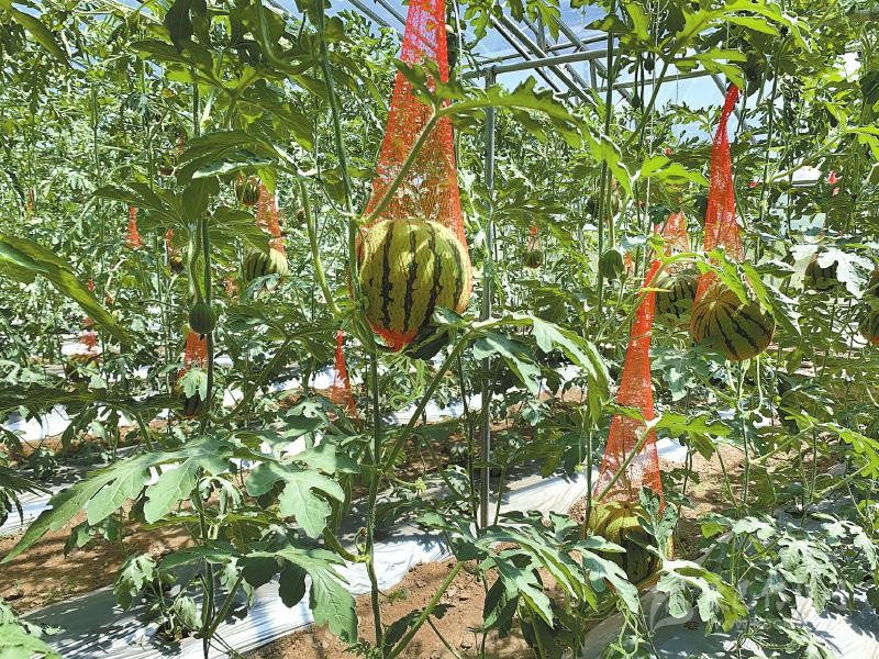 旭日鄉現代農業示范基地的西瓜大棚里果實累累。