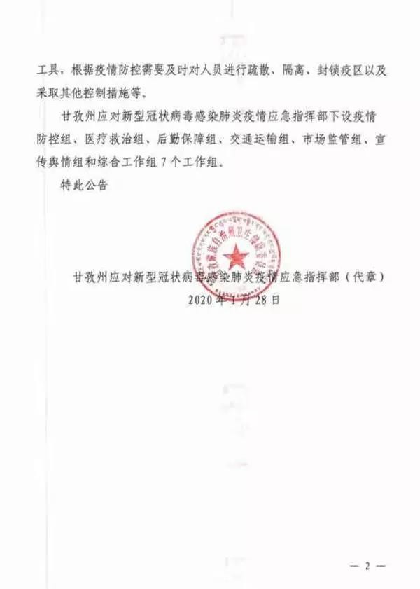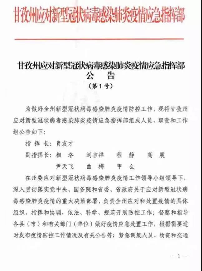 近日,甘孜州應對新型冠狀病毒感染肺炎疫情應急指揮部發布第1號、第2號、第3號公告。