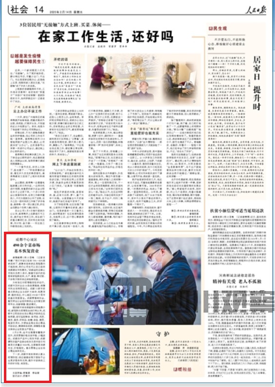 2月14日出版的《 人民日報 》報道了成都市為有效應對疫情穩定經濟運行,出臺20條政策措施,保障市民生活物資供應的舉措。目前,成都市市場供應充足。