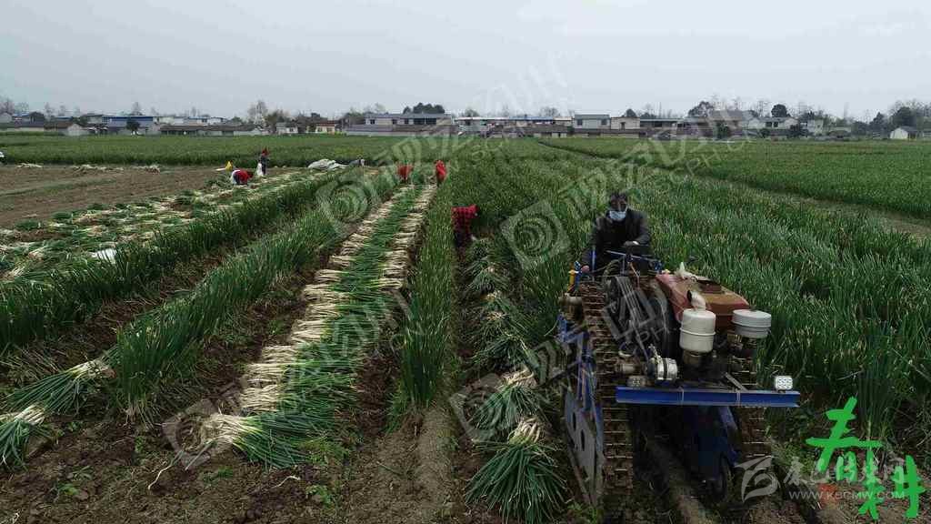 綿竹市富新鎮吉兆村14組,厚富種植專業合作社社員把大蔥收獲機采收后的大蔥打捆,以便后騰地種植蔬菜蓮花白。