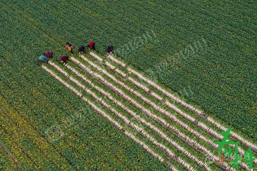 南充嘉陵區河西鎮,農業工人正在采收白白的大蘿卜。