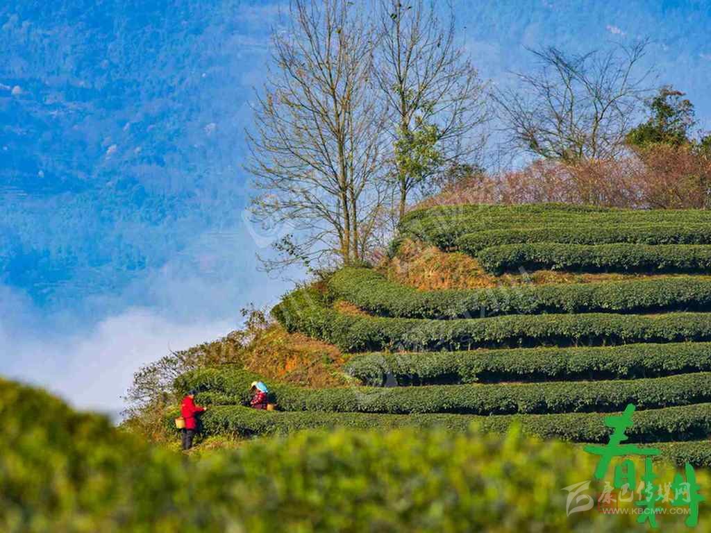 宜賓市翠屏區金秋湖鎮萬畝有機早茶基地,采茶姑娘們在忙著采摘早茶。