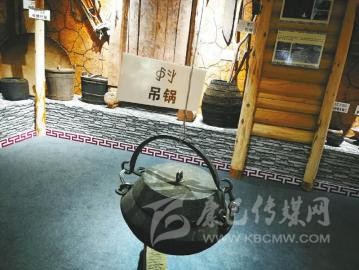 三河村村史館內陳列的吊鍋、石磨和彝族漆器等生活用具。