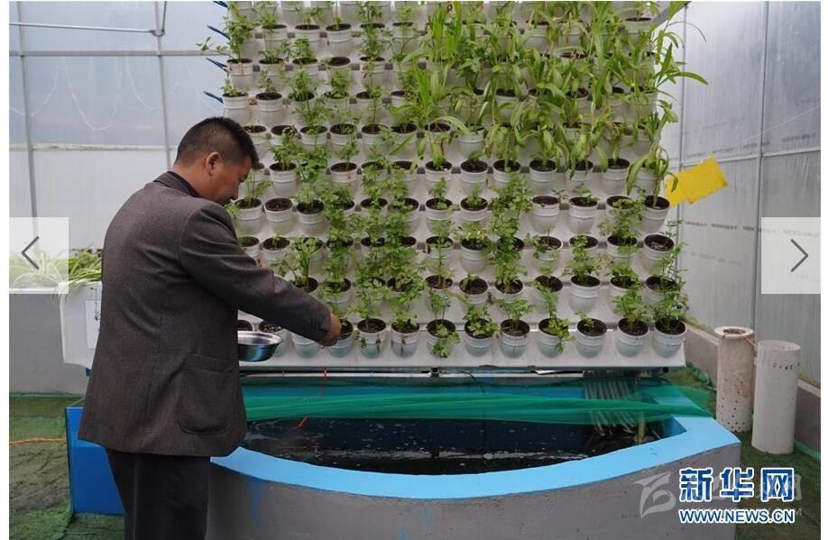 4月19日,在蘆山縣飛仙關鎮禾茂農業園區,工作人員給魚喂食。這里采取“魚菜共生”的模式,養魚和種菜的水通過過濾系統實現循環利用。