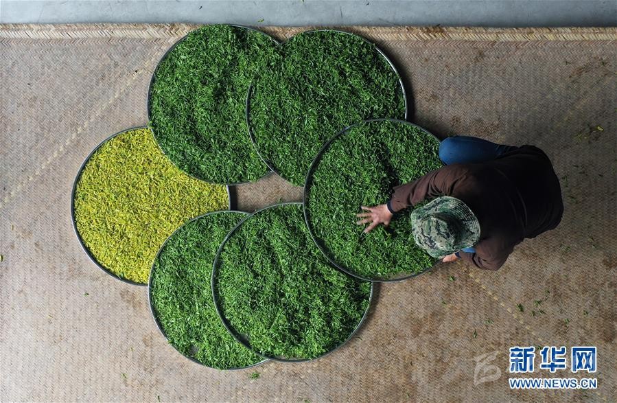 4月20日,在蘆山縣寶盛鄉,工作人員在加工茶葉。