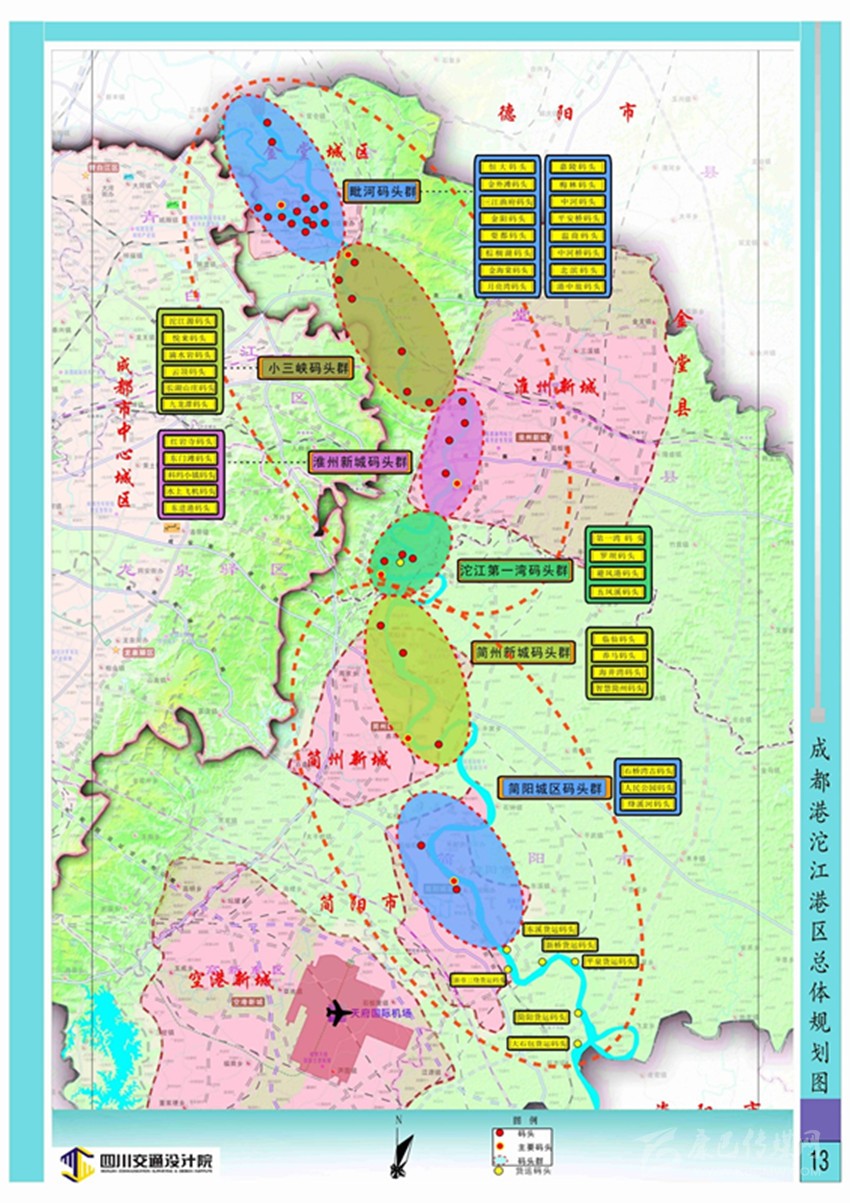 成都港將以旅游客運為主,適度發展貨物運輸,劃分為錦江港區、沱江港區、三岔湖港區,形成“兩江一湖”港區為主,其它港點為補充的總體格局。