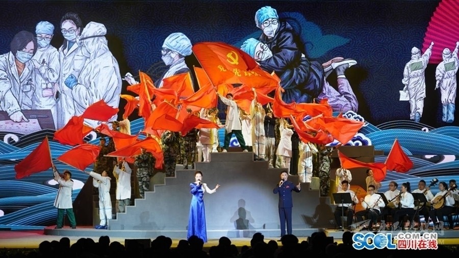 省領導甘霖、羅強,成都市領導王鳳朝,2020年全國藝術創作工作會議代表、全國各省(區、市)作家協會嘉賓、詩人,我省優秀抗疫醫務工作者和各界群眾代表等參加開幕式。