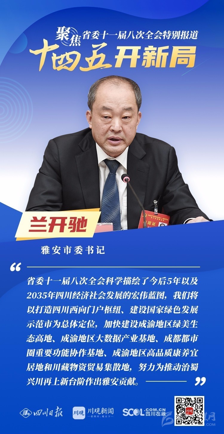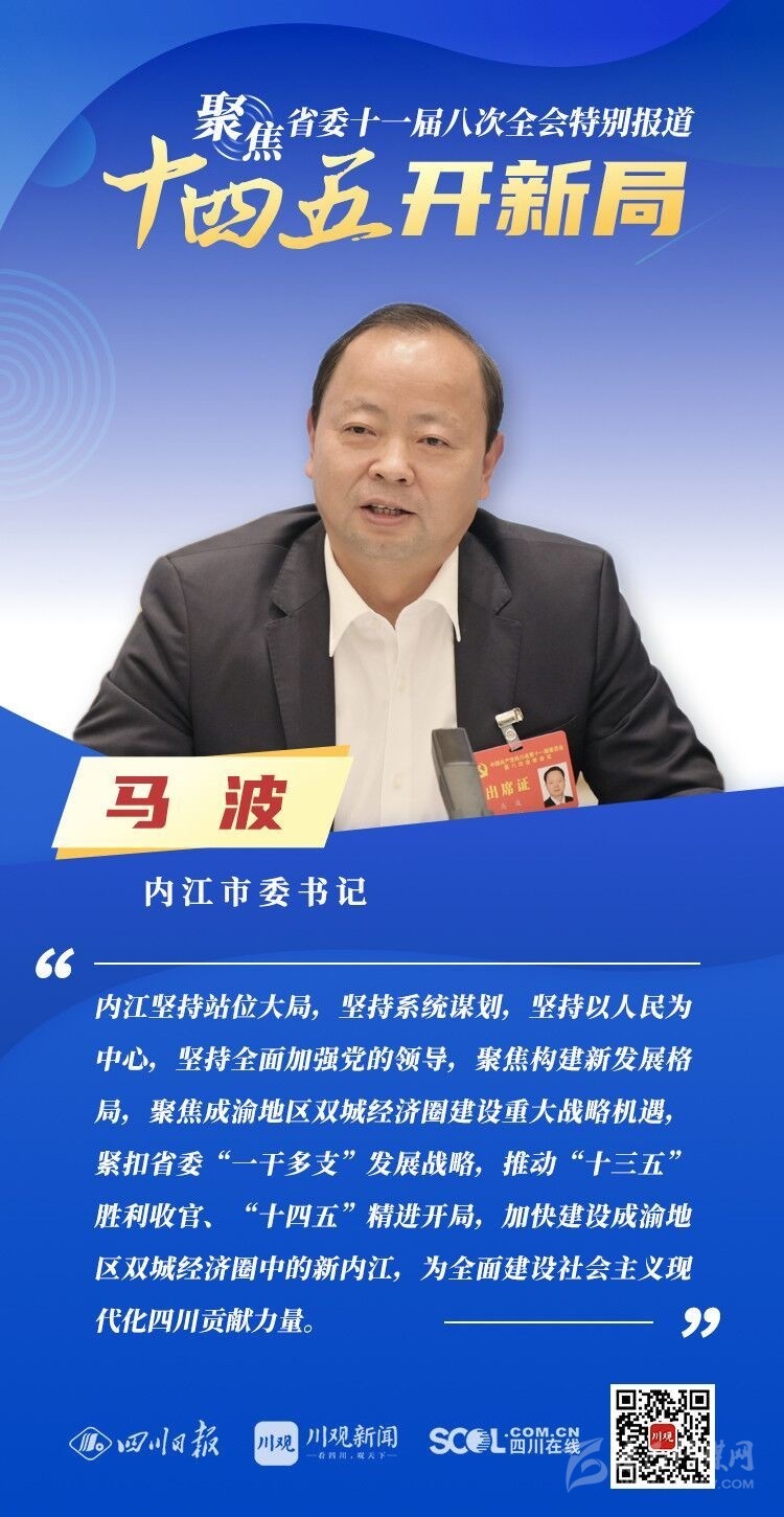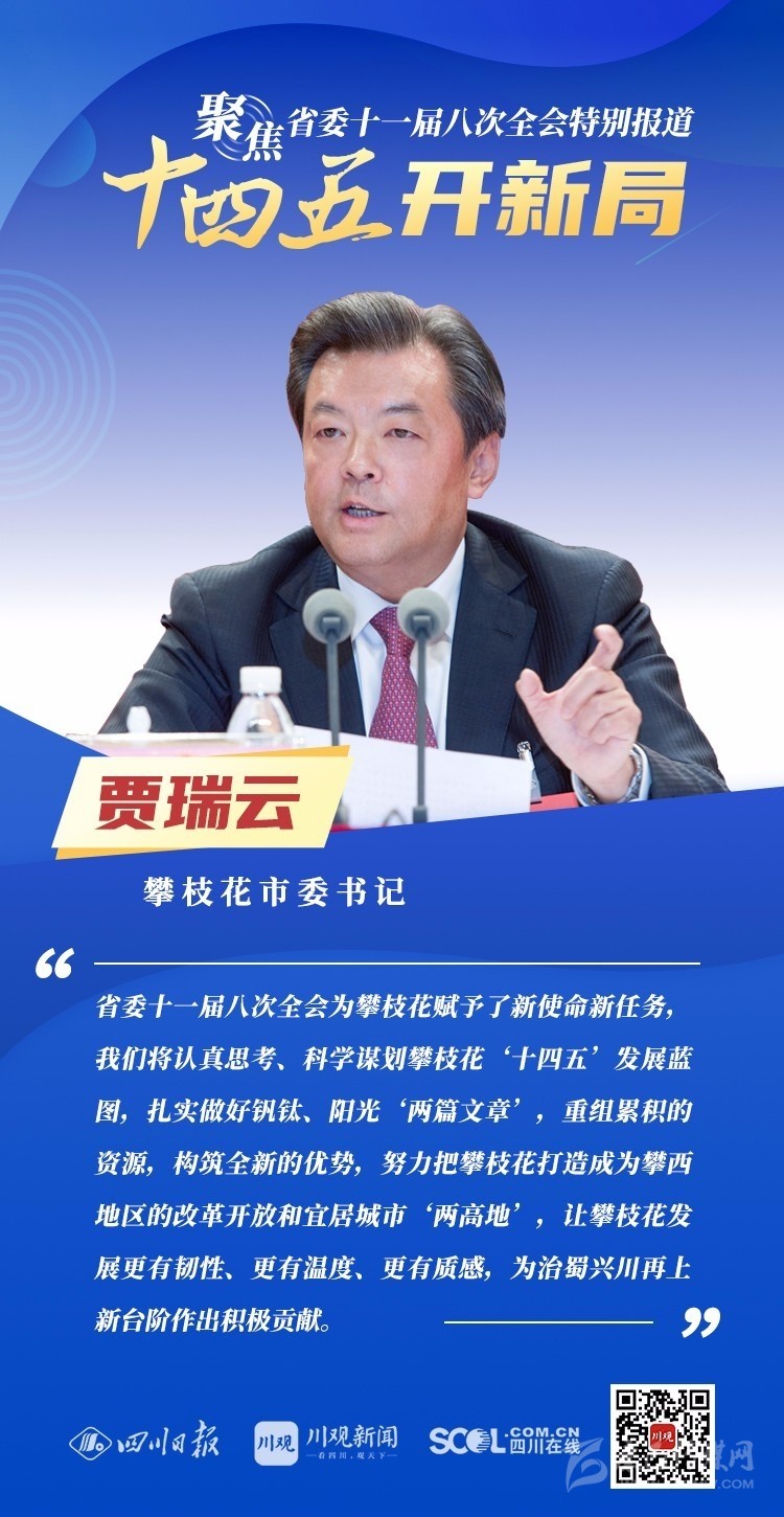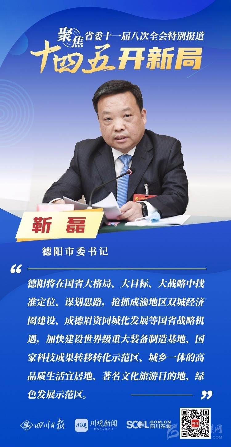 12月3日,中共四川省委十一屆八次全會在成都開幕,全會將深入學習貫徹黨的十九屆五中全會精神,審議《中共四川省委關于制定四川省國民經濟和社會發展第十四個五年規劃和二〇三五年遠景目標的建議(討論稿)》,為未來5年乃至更長時期四川發展謀劃新藍圖 。