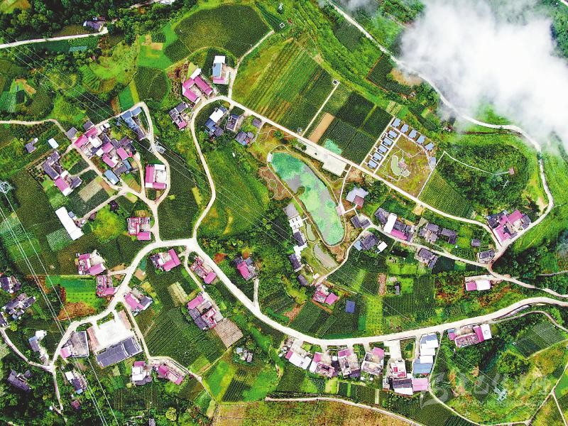 2020年8月17日海子坪村航拍。甘孜州瀘定縣海子坪村打造的“高科農技+高端民宿”吸引了眾多游客前來觀光旅游,村民的生活也發生著美麗的蛻變。 四川日報全媒體記者衡昌輝攝