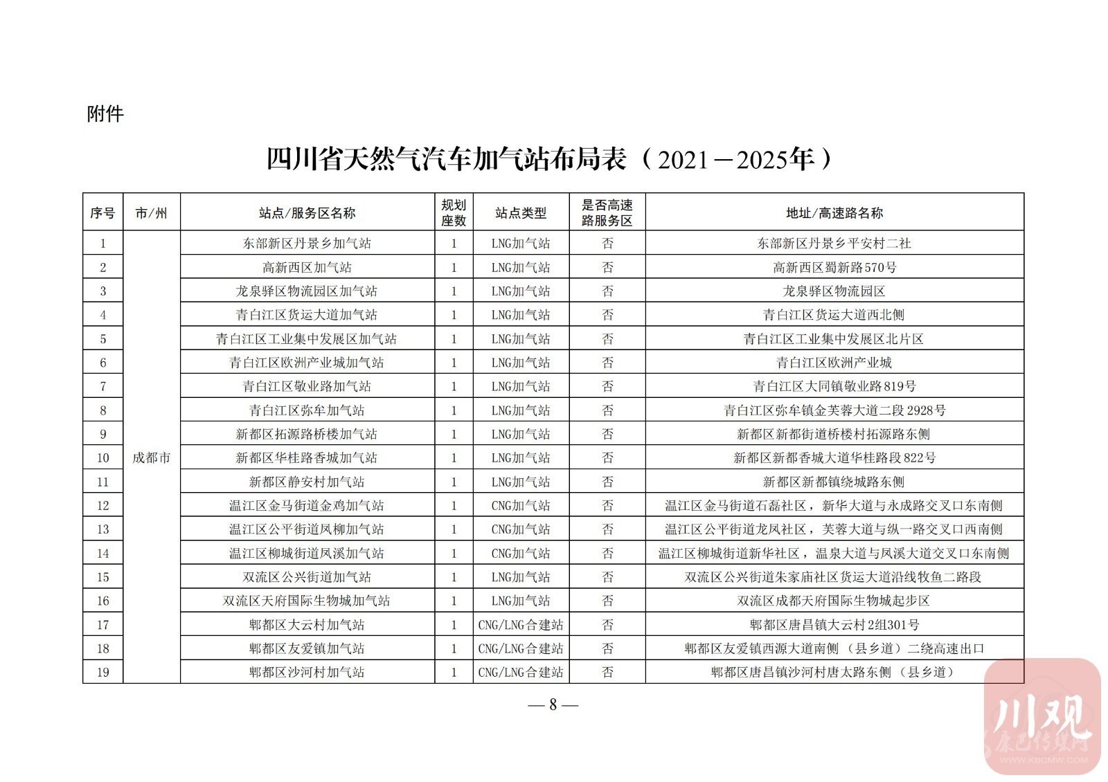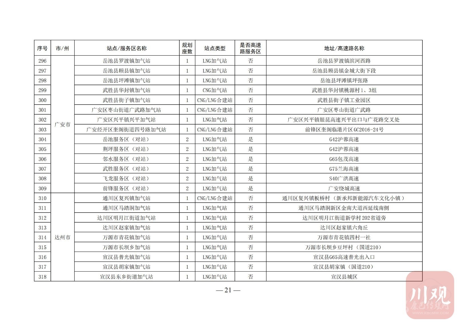 日前,四川省發展和改革委員會、四川省能源局印發《四川省天然氣汽車加氣站布局方案(2021-2025年)》(以下簡稱《方案》)。《方案》提出到2025年,四川將規劃新建加氣站500座(含高速公路服務區141座),其中,CNG加氣站15座、LNG加氣站401座、L-CNG加氣站8座、CNG/LNG合建站76座。