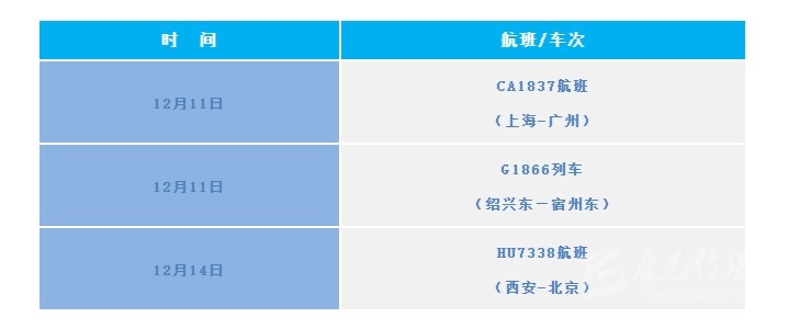搭乘過以下交通工具的來(返)川人員,第一時間主動向社區或居(村)委會、單位或入住酒店報備旅居史,配合做好相關防控工作。
