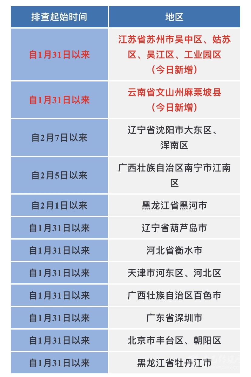 近期重點關注江蘇省蘇州市,遼寧省葫蘆島市,云南省文山州,廣西壯族自治區百色市疫情。不前往高、中風險地區以及發生本土疫情的地區。