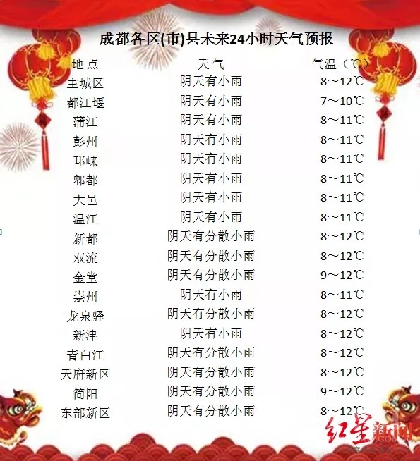 成都方面,預計未來七天,全市以陰冷天氣為主,氣溫逐步降低,且雨日較多。高海拔山區有雨夾雪或小雪,日平均氣溫將從當前的10℃左右下降至4℃左右;最高氣溫降幅將達10℃左右。