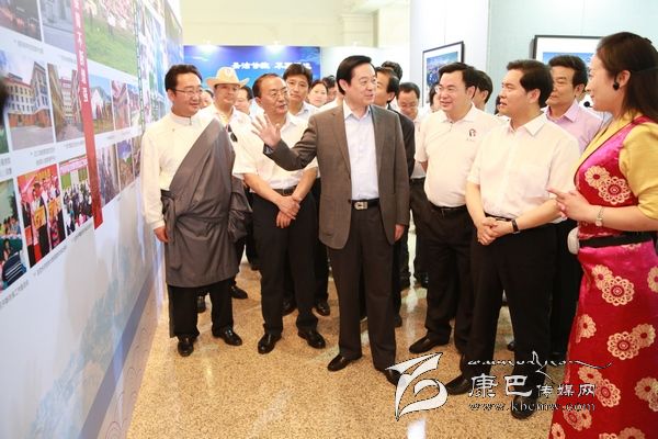 6月8日上午10時,劉奇葆、王正偉來到民族文化宮,首先走進四川甘孜藏區發展成就暨旅游圖片展現場。這里,展示的是甘孜藏區經濟社會發展成就、自然風光、歷史文化、民族風情、田園藏寨等方面內容的圖片。一幅幅圖片,一個個場景,劉奇葆都非常熟悉。在四川工作期間,他曾十幾次奔赴甘孜藏區考察,足跡遍布全州18個縣。劉奇葆仔細觀看展示圖片,并不時詢問交通通信、優勢產業等發展情況以及民生改善的情況。劉奇葆說,甘孜山川秀美,民族風情濃郁,是一方充滿生機和活力的土地,希望甘孜立足自身實際,大力發展農牧業和文化旅游業,大力加強生態建設和環境保護,大力改善民生,努力走出藏區科學發展、跨越發展之路。