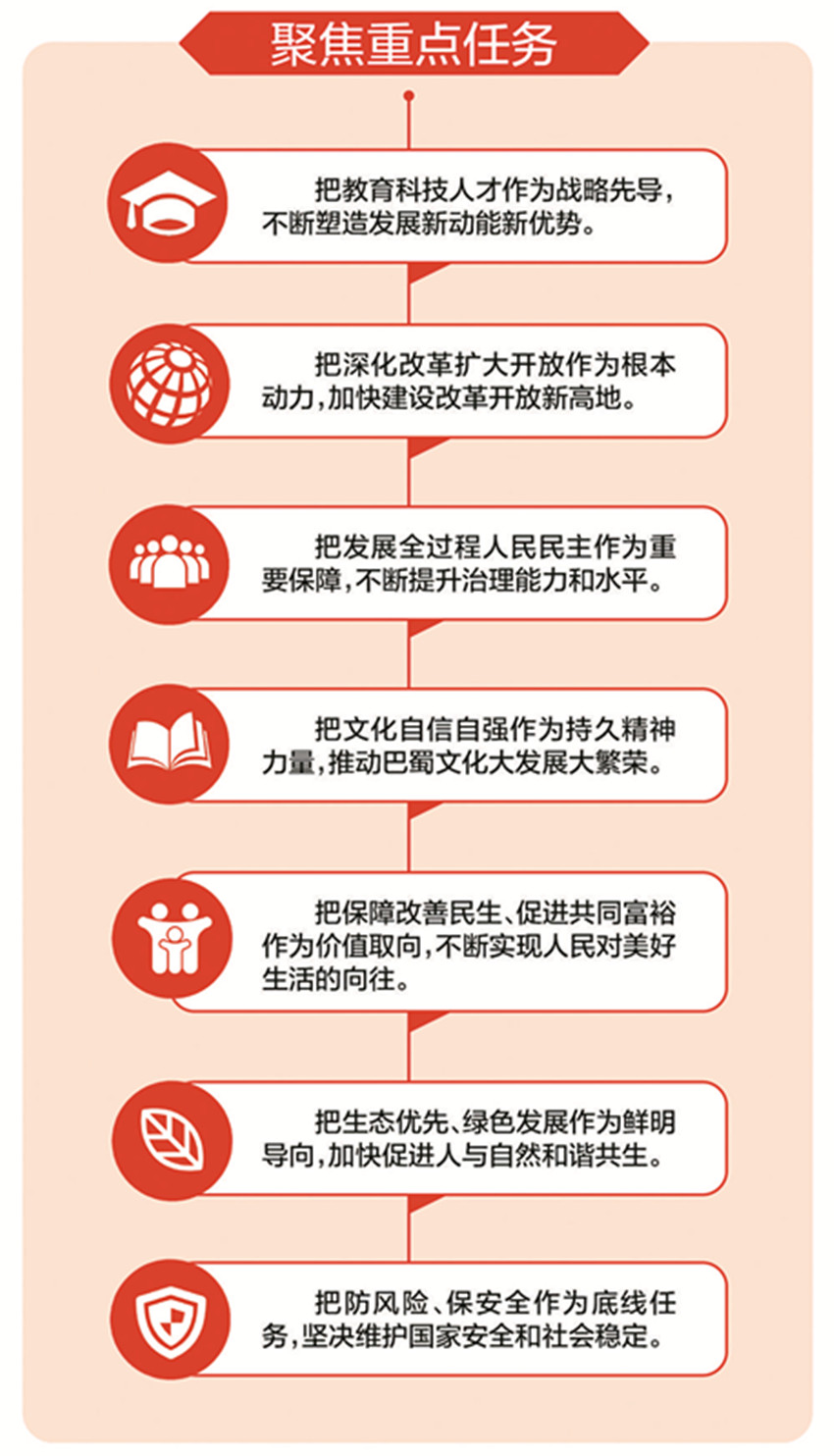 “省委全會緊扣國家所需和四川所能,進一步對建設現代化經濟強省、強化教育科技和人才支撐、加快民生社會事業發展、提升治理體系和治理能力現代化水平等作出系統部署,明確了四川現代化建設的重點任務。”省檔案館館長祝云說,這些部署有利于在更高戰略維度、更廣空間尺度上塑造我省發展新優勢。
