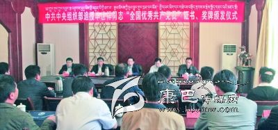 本網(wǎng)訊(記者 周華 陳楊 文/圖)7月17日,中央組織部追授畢世祥同志“全國(guó)優(yōu)秀共產(chǎn)黨員”證書、獎(jiǎng)牌頒發(fā)儀式在康定舉行。受省委委托,正在我州出席指導(dǎo)州委黨的群眾路線教育實(shí)踐活動(dòng)專題民主生活會(huì)的省委常委、政法委書記劉玉順代向畢世祥同志的妻子許惠明頒發(fā)了證書和獎(jiǎng)牌。