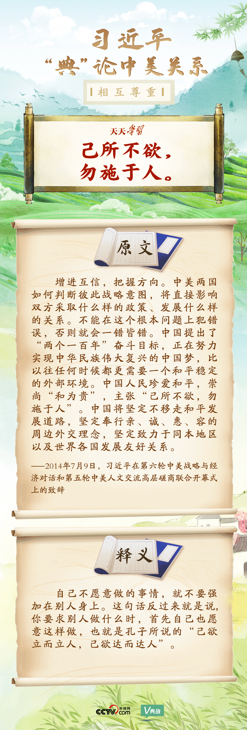 黨的十八大以來,習近平主席就中美關系發表了一系列重要講話。他站在時代高度分析、研判中美關系現狀及發展趨勢,并引經據典為發展中美關系指出正確方向。這些論述蘊含深刻的戰略思維和政治智慧,具有重大現實意義和深遠歷史意義。央視網《天天學習》與您一起深刻領會。
