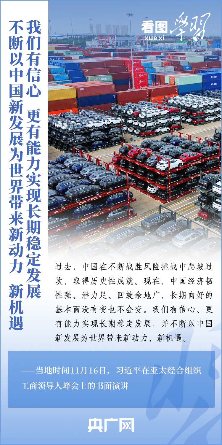 當地時間11月16日,國家主席習近平應邀出席亞太經合組織工商領導人峰會并發表書面演講。習主席深刻總結了亞太經濟合作30年來非凡成就和啟示,對亞太合作下一個30年將走向何方這一新的時代之問提出中國答案,重申“中國打造市場化、法治化、國際化營商環境的決心不會變,一視同仁為外商投資提供優質服務的政策不會變”,向全球工商界發出邀請,歡迎“積極參與中國式現代化進程,共享中國高質量發展帶來的巨大機遇!”一起來學習。