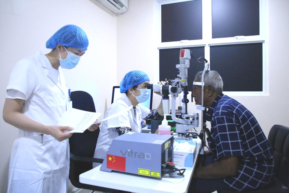??69歲的艾哈邁德·卡洛是中國醫療隊“光明行”活動的獲益者。兩個兒子曾帶著患有眼疾多年的老人輾轉多家醫院,均因手術難度大而無法得到有效治療。2023年,中國醫療隊醫生經過充分評估后,給老人成功實施了手術。術后揭開眼罩時,老人家激動地說:“醫生,我可以看到你的胸牌了,謝謝你!”老人的兒子也在社交媒體發帖說:“真誠感謝中國醫生?!背酥尾?,中方還著力培訓當地醫務人員,力爭為當地打造一支“帶不走”的眼科專家隊伍。
