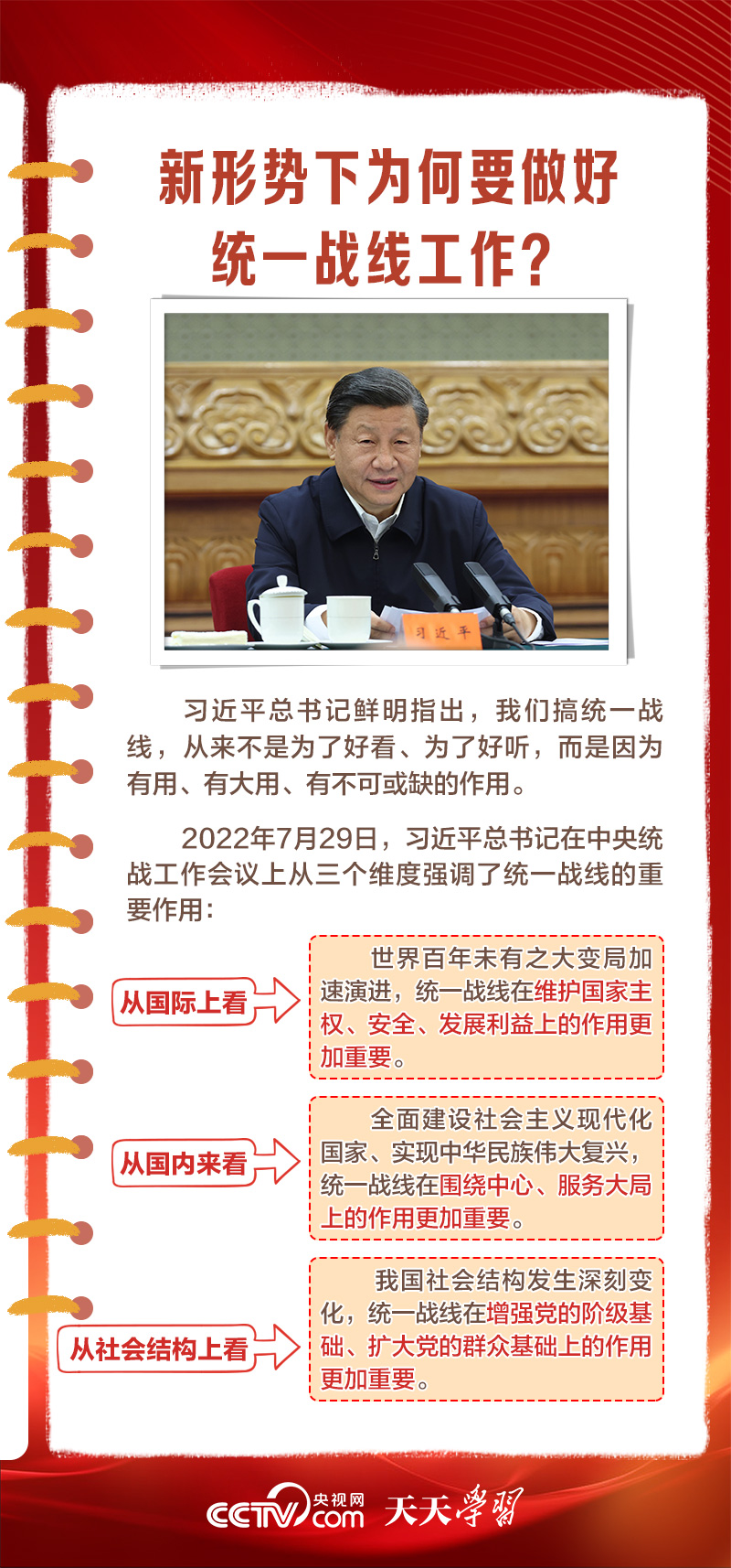 在百余年的奮斗歷程中,我們黨始終把統一戰線擺在重要位置,讓團結的旋律始終高昂,共同奮斗的力量始終激蕩。從“重要法寶”到“強大法寶”,體現出總書記對黨的統戰工作一以貫之的高度重視。