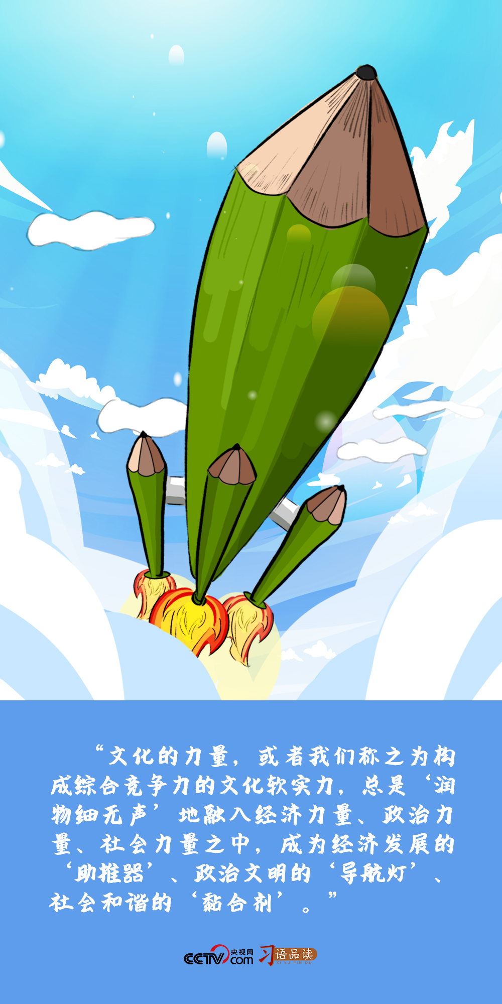 2005年8月12日,時任浙江省委書記的習近平在《浙江日報》“之江新語”專欄中寫道:“文化的力量,或者我們稱之為構成綜合競爭力的文化軟實力,總是‘潤物細無聲’地融入經濟力量、政治力量、社會力量之中,成為經濟發展的‘助推器’、政治文明的‘導航燈’、社會和諧的‘黏合劑’。”