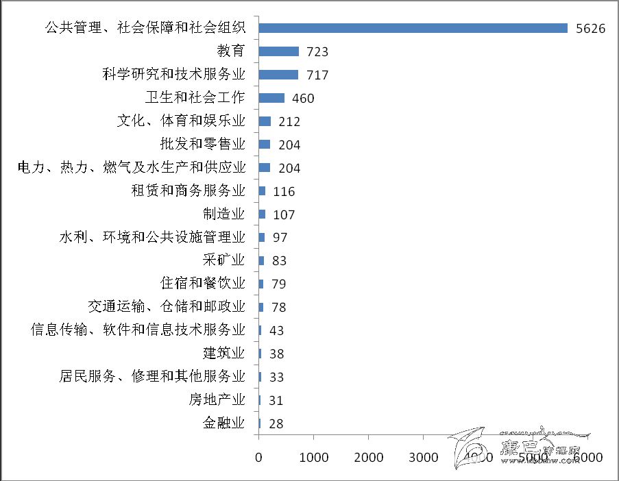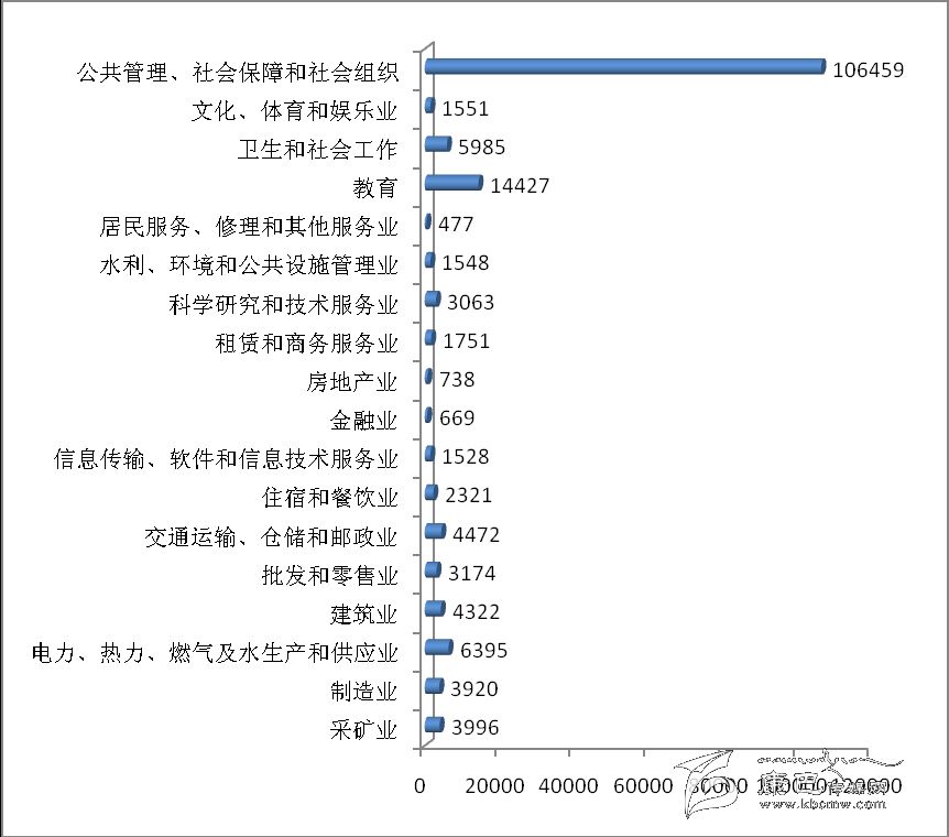 2013年末,在第二產業和第三產業法人單位中,位居前三位的行業是:公共管理、社會保障和社會組織 5626 個,占62.87 %;教育723個,占8.08 %;科學研究和技術服務業717個,占8.01 %。在有證照個體經營戶中,位居前三位的行業是:批發和零售業8349個,占41.69 %;交通運輸、倉儲和郵政業6462個,占32.27 %;住宿和餐飲業3102個,占 15.49 %(詳見表1-2)。