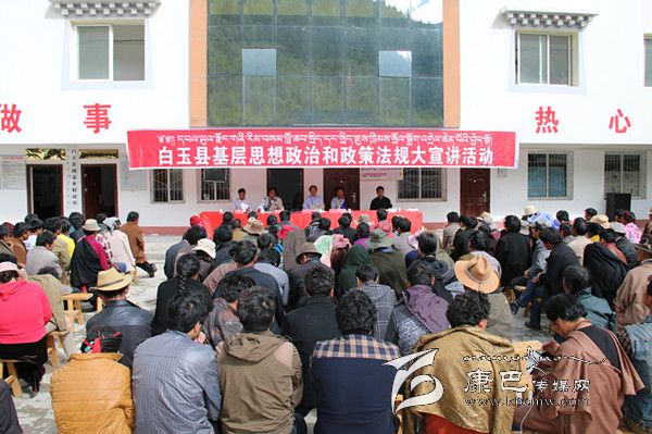 8月的白玉,烈日當頭,秋高氣爽。31日上午,絨蓋鄉政府大院內,白玉縣基層思想政治和政策法規大宣講活動正在這里精彩“上演”,400多名前來“聽課”的各村群眾正津津有味地品味著縣宣講團成員松吉尼瑪通俗易懂的藏語大宣講。從黨的十八大到十八屆三中全會精神,從糧食直補到低保、新農保,從養老保險、殘疾人幫扶到相關法律法規,宣講者深入淺出,傾聽者全神貫注。