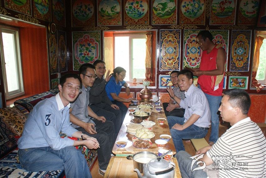 進入阿志瑪家寬敞明亮的藏式客廳時,桌上已經擺滿了水果、酥油茶、青稞酒、坨坨牛肉等好吃的東西。我們高興地吃著美食,又乘興聊了開來。