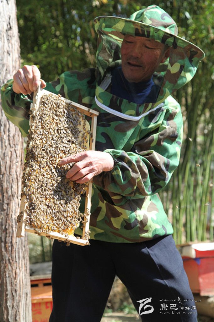 1974年,因?yàn)轲B(yǎng)蜂,高廷明成了割“尾巴”的對(duì)象,被連續(xù)批斗了好幾個(gè)晚上。但所有這些,都沒有阻擋他養(yǎng)蜂的喜好,反而激發(fā)了他發(fā)展壯大養(yǎng)蜂業(yè)的欲望。“我們這里有桃花、李花、金銀花、油菜花,山上還有成片的五倍子花,五倍子花粉成糖顏色最好,金銀花蜜則有藥用價(jià)值。養(yǎng)蜂講究‘三睛兩雨’,最好是晚上下雨,白天出太陽,這種天氣花粉最好,產(chǎn)糖高。由于人手不夠,我都采用小轉(zhuǎn)場(chǎng)放蜂,一般只轉(zhuǎn)場(chǎng)兩、三公里,走遠(yuǎn)了一個(gè)人不方便。采蜜時(shí)要把準(zhǔn)季節(jié),要不然會(huì)出現(xiàn)人與蜜蜂搶蜜的現(xiàn)象,說不定還會(huì)被蜜蜂蟄傷。”在院子后面的一片樹林里,高廷明一邊分蜂一邊對(duì)記者說。他還告訴記者,雖然自己天天與蜜蜂打交道,這些有靈性的小家伙似乎已經(jīng)習(xí)慣主人的氣味,但自己還是被蜜蜂蟄傷過。每次被蜜蜂蟄傷時(shí),家里的碘酒就派上了用場(chǎng)。