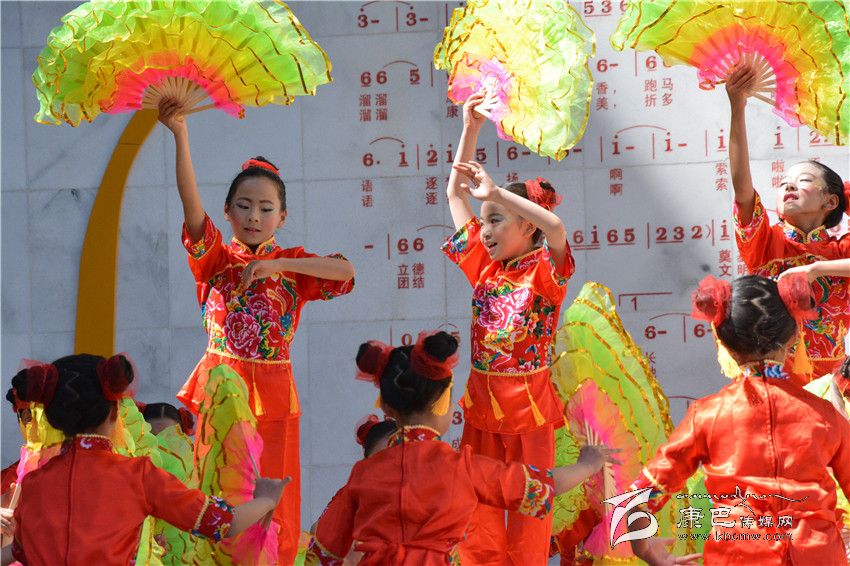 甘孜鎮雙語幼兒園幼兒表演扇舞。