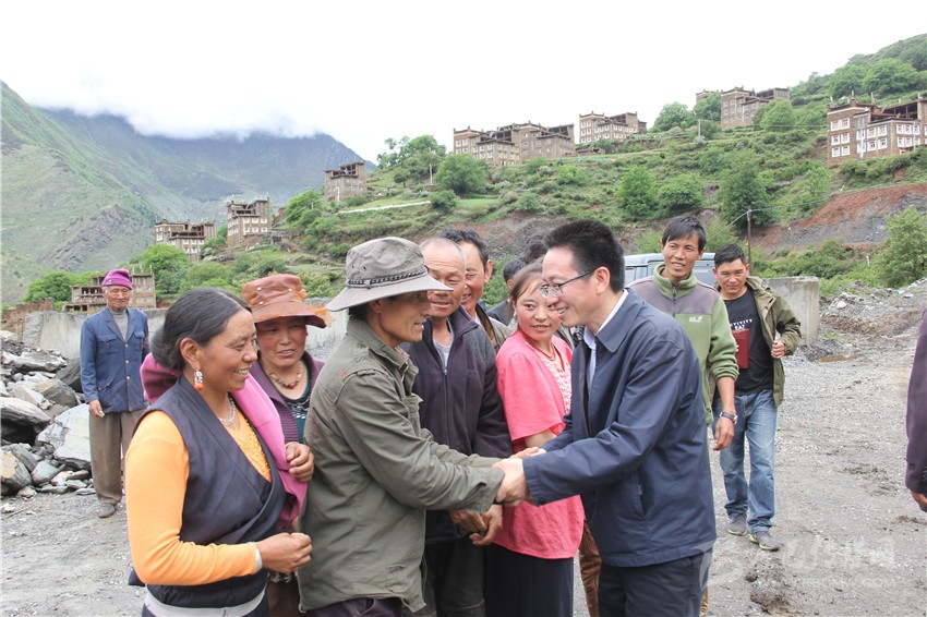 縣委副書記、縣長楊國清在協德鄉地震災區調研災后重建。