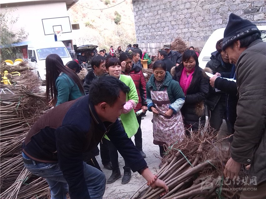 村民踴躍領取大櫻桃樹苗。