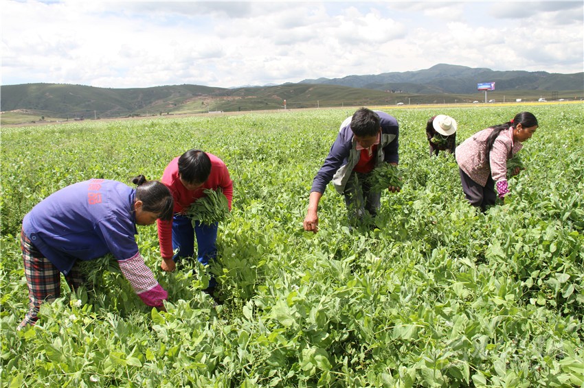 理塘圣地農莊工人采摘豌豆尖。