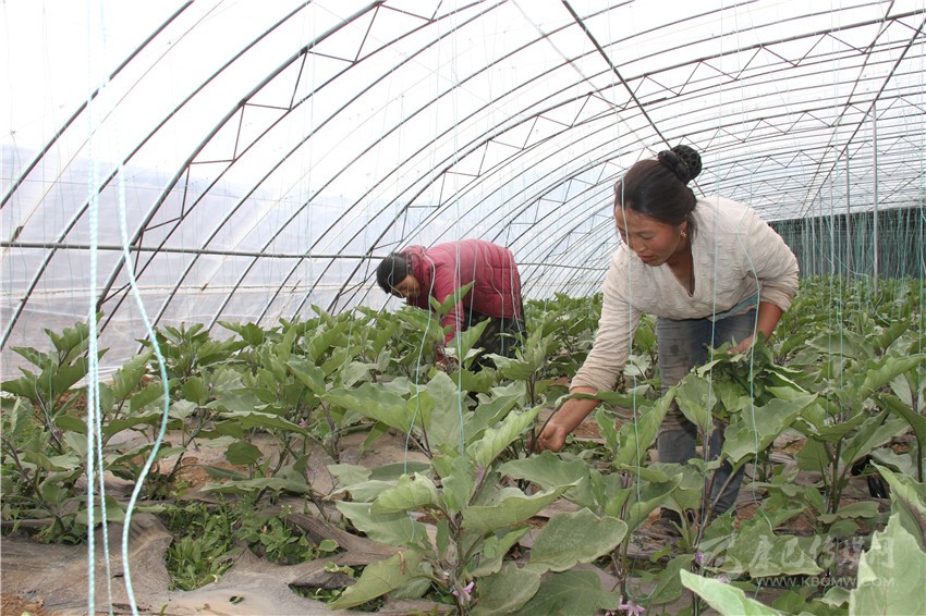 4月13日,理塘縣甲洼鎮俄曲村,貧困村民斯朗擁忠正在瑪吉阿米花園農莊里給茄子打枝。