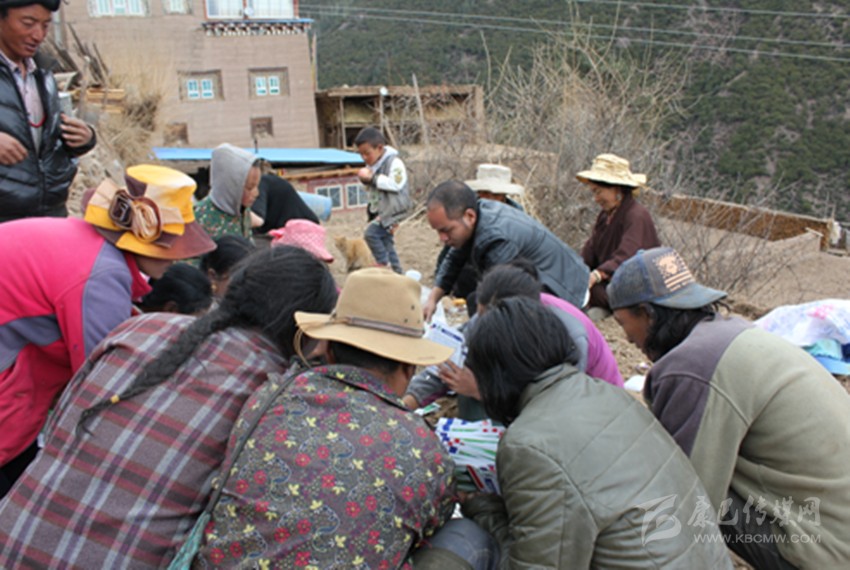 新龍縣委宣傳部干部安子子拉為尤拉西洛依村村民發放農用物資