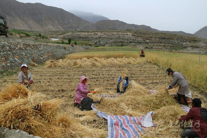本網訊(劉小兵 金鑫 攝影報道)眼下,我州多地群眾正在忙碌春耕,海拔較低、氣溫較高的得榮縣曲雅貢鄉卻已是一片麥浪金黃,忙碌著收割冬小麥的人們三五成群地撒落在田間地頭。一張張溢滿笑容的臉和一束束飽滿的麥穗構成了一幅幅豐收的喜悅圖景。