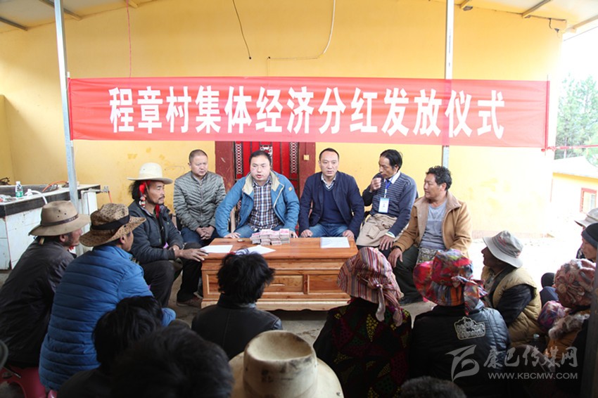 4月27日下午,雅江縣米龍鄉(xiāng)程章村熱鬧非凡、喜氣洋洋。 剛吃過午飯,村民們就齊刷刷地聚集到了村民活動(dòng)室,等待村集體經(jīng)濟(jì)首次分紅。