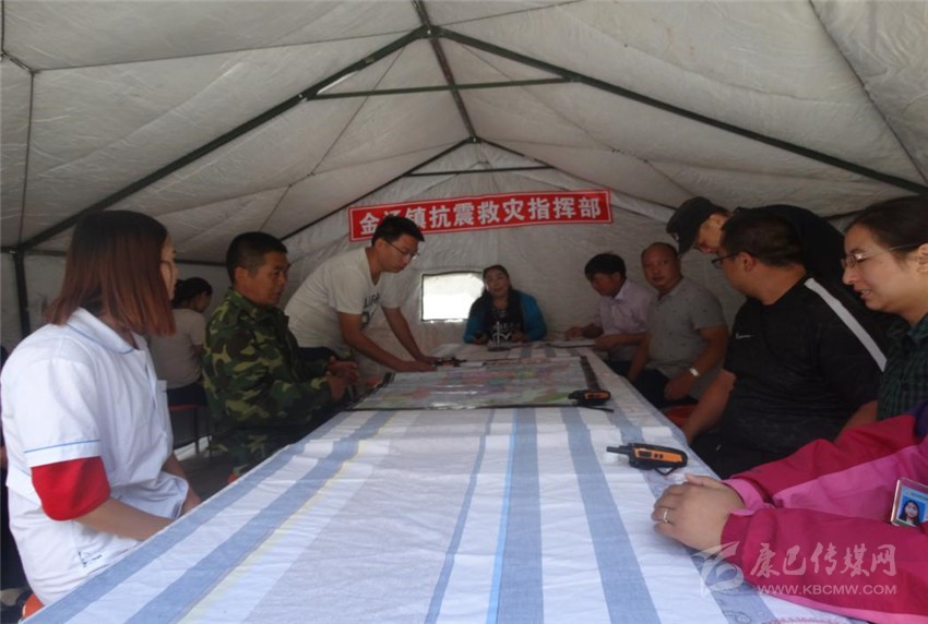 為了確保演練實效。金湯鎮(zhèn)進行了地震真實場景模練。上午11點,防空警報聲響徹金湯鎮(zhèn)上空,模擬集鎮(zhèn)境內發(fā)生5.0級地震應急演練正式開始。群眾、學生立即進行就地緊急避險。第二聲警報拉響,鎮(zhèn)村兩級干部立即指揮群眾迅速有序向應急避難場所疏散。與此同時,鎮(zhèn)黨委、政府成立臨時抗震救災指揮部,迅速啟動地震應急預案三級響應,共設置9個救援小組,按照各自分工開展交通保障、治安維護、傷員救治等演練科目。演練歷時45分鐘,整個過程緊張有序、實用性強,達到了預期效果。