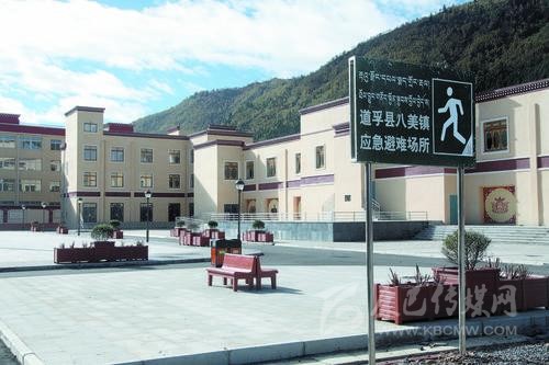 “這邊是避難廣場,設置有救災物資儲備倉庫等;廣場邊還有露天水儲備設備和供水設施,一旦遇到緊急情況,這些設施可以馬上啟用。避難廣場外是新建成的濱河路,這一帶曾經是爛泥灘。”因為災后重建,陳慶在道孚八美鎮一住就是3年,在介紹起八美鎮的災后重建成果時,他顯得有些自豪。