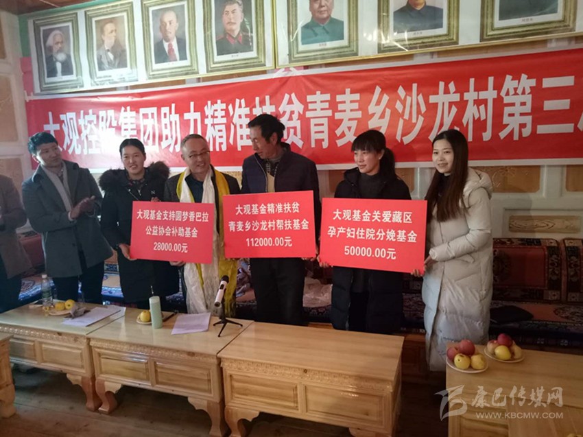 據(jù)悉,上海大觀慈善基金會(huì)黃宏文理事長(zhǎng)一行先后到由于室內(nèi)電線短路遭受火災(zāi)的水洼鄉(xiāng)和定波鄉(xiāng)受災(zāi)戶家中探望,詳細(xì)了解災(zāi)情和災(zāi)后生產(chǎn)生活狀況后,分別捐贈(zèng)7萬(wàn)元和3萬(wàn)元。隨后,前往青麥鄉(xiāng)沙龍村召開(kāi)大觀控股集團(tuán)幫扶沙龍村精準(zhǔn)扶貧推進(jìn)會(huì),發(fā)放幫扶資金11.2萬(wàn)元用于該村各項(xiàng)事業(yè)的發(fā)展,同時(shí)為鄉(xiāng)城縣衛(wèi)計(jì)局農(nóng)村產(chǎn)婦住院分娩基金捐贈(zèng)5萬(wàn)元,為圓夢(mèng)香巴拉公益協(xié)會(huì)捐贈(zèng)2.8萬(wàn)元。