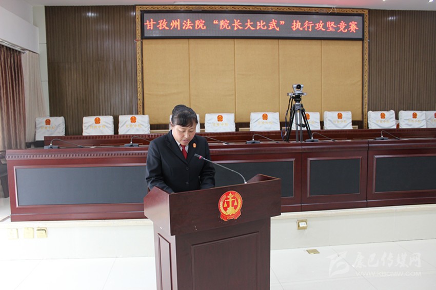 6月8日,全州基層法院“院長大比武”執行攻堅競賽在州中級人民法院舉行,瀘定縣人民法院院長鐘天蓉在競賽階段