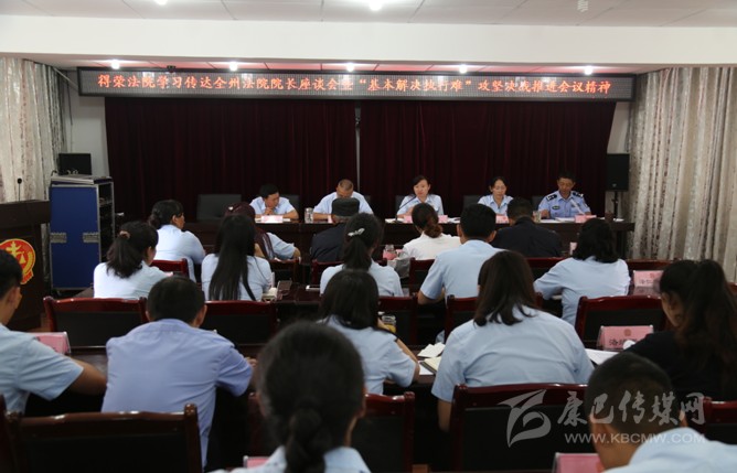 本網訊(志瑪擁忠)為深入學習貫徹黨的十九大和十九屆二中、三中全會精神,全面貫徹落實省委十一屆三次全會精神,8月6日,我院組織全院干警于四樓會議室召開干警大會,傳達全州法院院長座談會暨“基本解決執行難”攻堅決戰推進會精神,院黨組書記、院長孫菊花主持會議。