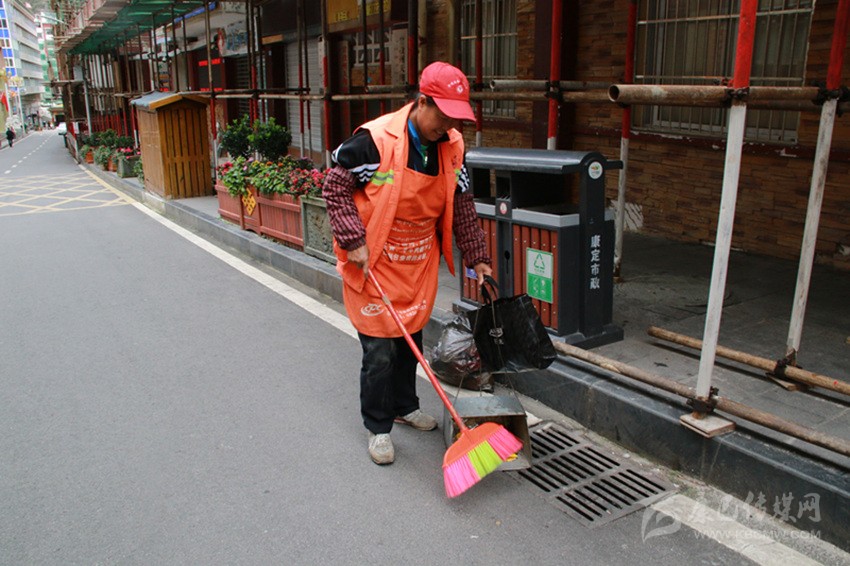 寧愿一人臟,換來千家凈。陳雪梅是康定市一名普通的環衛工作者,3日6點鐘,她到達光明路州委門口段,開始了她一天的工作,這是她的“領地范圍”。由于前一晚上的大雪,路面很濕,還有點滑,這給她的工作帶來了難度。她一手拿著掃帚和簸箕,一手拿著袋子,仔細地掃著每一個角落。她告訴記者,國慶期間,由于車流量和人流量的增加,給環衛工作帶來了較大的壓力,但也正因如此,更要時刻保持街道路面的整潔,給廣大游客留下干凈甘孜的好印象。