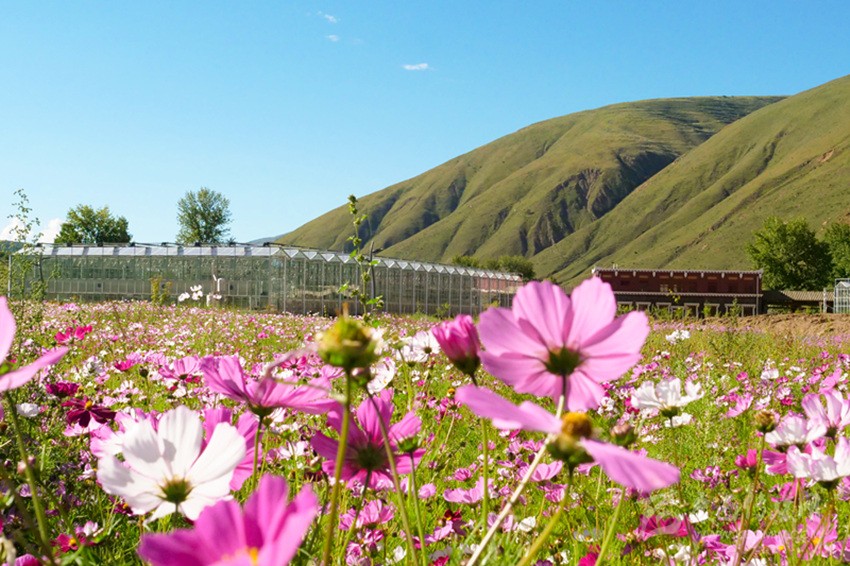 當車輛飛馳在G305沿線,遠處顏色鮮艷的圓柱形建筑十分吸引眼球,推開絳紅色的木質大門那一刻,就像是開啟了一座寶藏之門,經過半圓的坡道,來到了位于道孚縣鮮水鎮孜龍村的甘孜州康巴植物園。