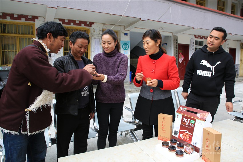 雅江米龍鄉負責人介紹該鄉特色產品。 張兵 攝