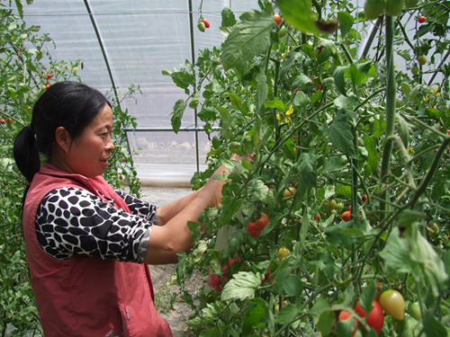 “盛煌公司來(lái)這里開展蔬菜大棚建設(shè)以后,每畝每年按照1500元的標(biāo)準(zhǔn)支付了村民的土地流轉(zhuǎn)租金。我是外地嫁到這里來(lái)的,沒有土地,他們雇傭我來(lái)務(wù)工,每個(gè)月按照1800元支付我的工資,每個(gè)月還可以休息兩天。”正在大棚里摘水果番茄的村民陳國(guó)蓉知足地說。