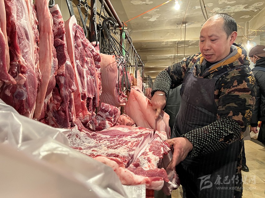 1月19日上午,在郭達橋農貿市場二樓豬肉售賣區,案板上擺放的排骨、豬腿、精修五花肉等格外“吸睛”,不少市民正10斤、20斤地忙著采買。商販唐太榮告訴記者,近段時間,豬肉價格有所回落,精修五花肉回落至14元每斤,吸引了不少市民前來“囤肉”過節,他每天能賣出3頭豬。他直言,“春節期間生豬出欄將顯著增加,市場供應總體有保障,價格波動不大,銷量只會越來越好。”