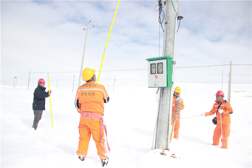 理塘縣電力員工雪中搶修巡檢忙