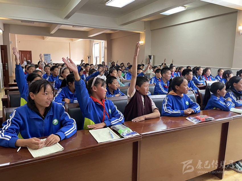 本網訊 在第35個“6·26”國際禁毒日,白玉縣人民法院正義雪蓮女子審判團隊到縣第三完全小學開展禁毒宣傳進校園專題活動,活動緊扣毒品的種類、吸毒的危害、如何遠離毒品等內容,與同學們進行問答式互動交流,并為學生們送去禁毒知識大禮包。圖為學生們踴躍參與交流互動。 白宣 攝影報道