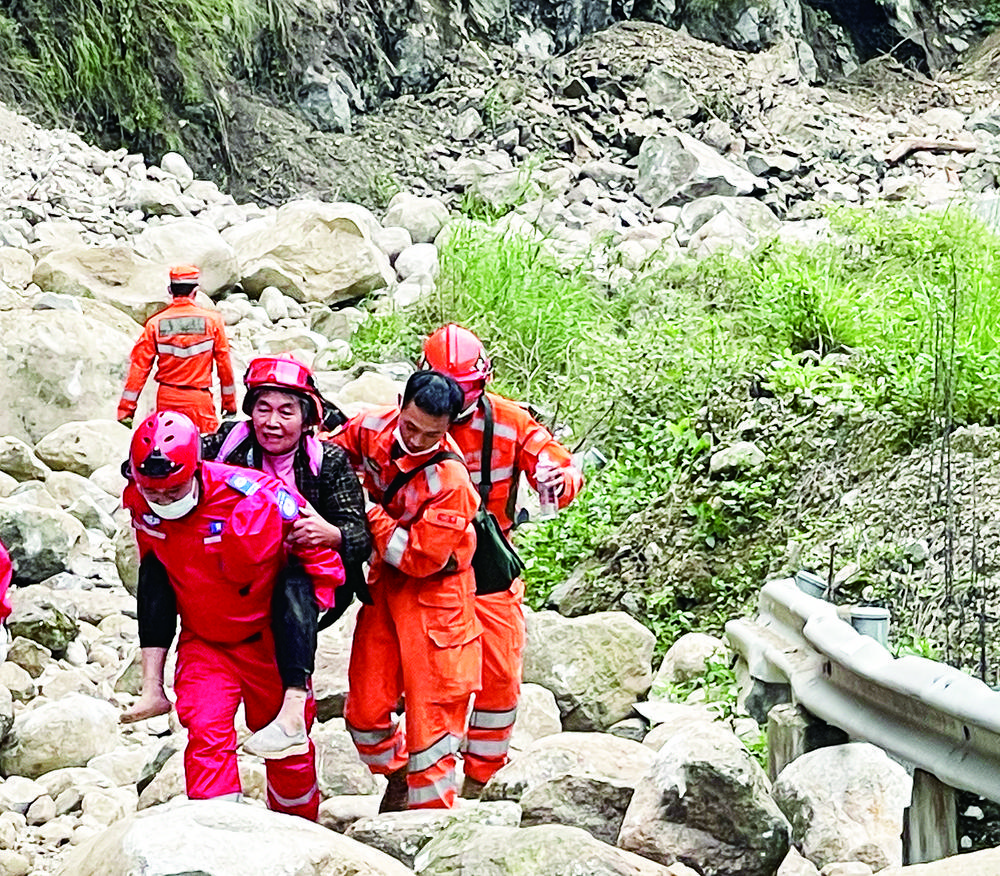 受地震影響,通往天池山村的道路受阻,有群眾被困。9月5日18時,德陽市消防救援支隊到達瀘定縣得妥鎮開展救援。夜幕降臨,救援隊伍從南頭村出發沒走多遠,道路就中斷了。巨大的落石將前往天池山村的道路完全堵死,大家只好退回南頭村。當晚,已撤離到山下的村民自行組織排查發現,一位八旬老人失去了聯系。